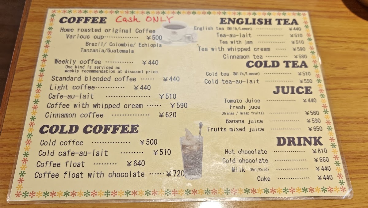 Cafe World’s menu is a delightful nod to the traditional Japanese kissaten style, offering a selection of morning sets that perfectly complement the rich, beautifully brewed coffee—often heralded as home-roasted and crafted with care. Start your day with the popular No. 1 Morning Set, which includes sumptuous toast, fluffy scrambled eggs, crispy bacon, and a fresh salad, all for just JP¥730. Alternatively, if you prefer something simpler, the A Set brings you toast and coffee for only JP¥490, while the B Set, with a buttery roll and salad, is offered at JP¥620. Each bite evokes a sense of comfort, reminding you of home-cooked meals enjoyed in the warmth of family and friends.